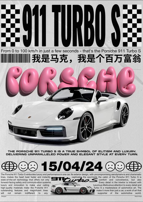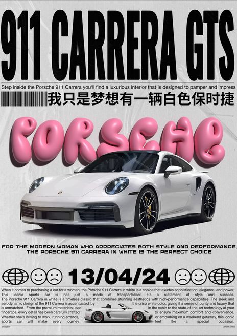 Розовый Порше | Плакат